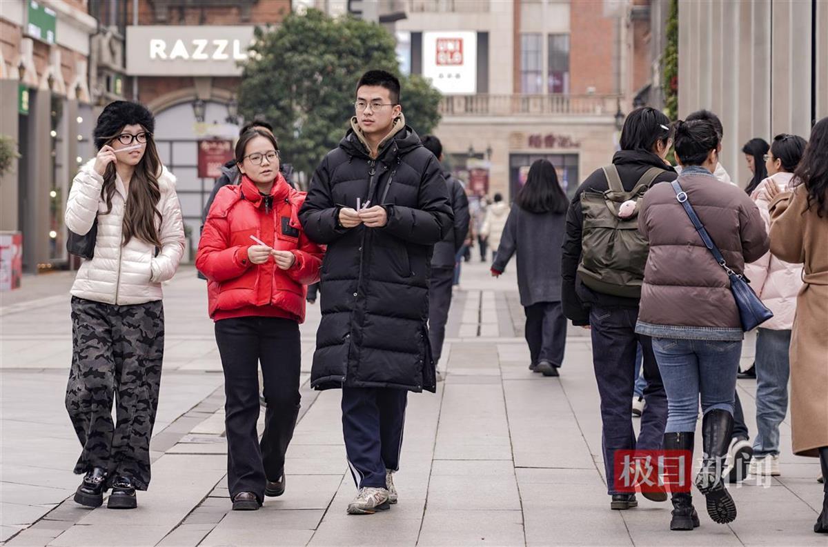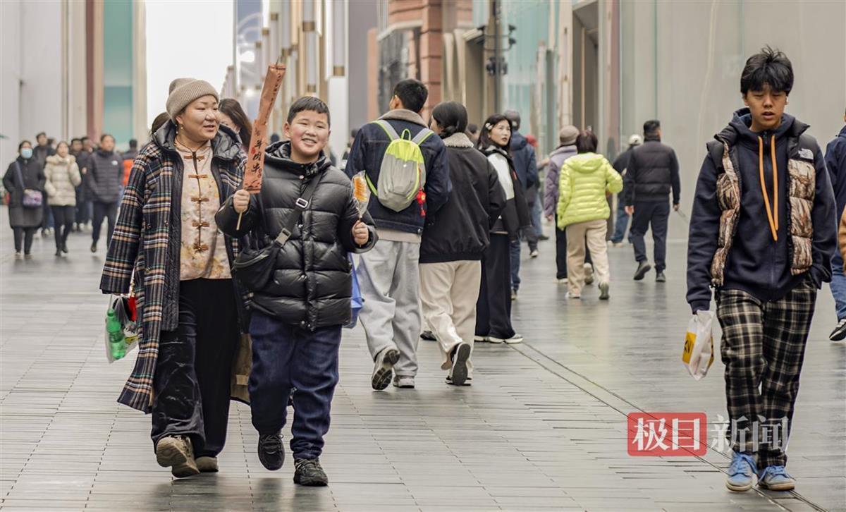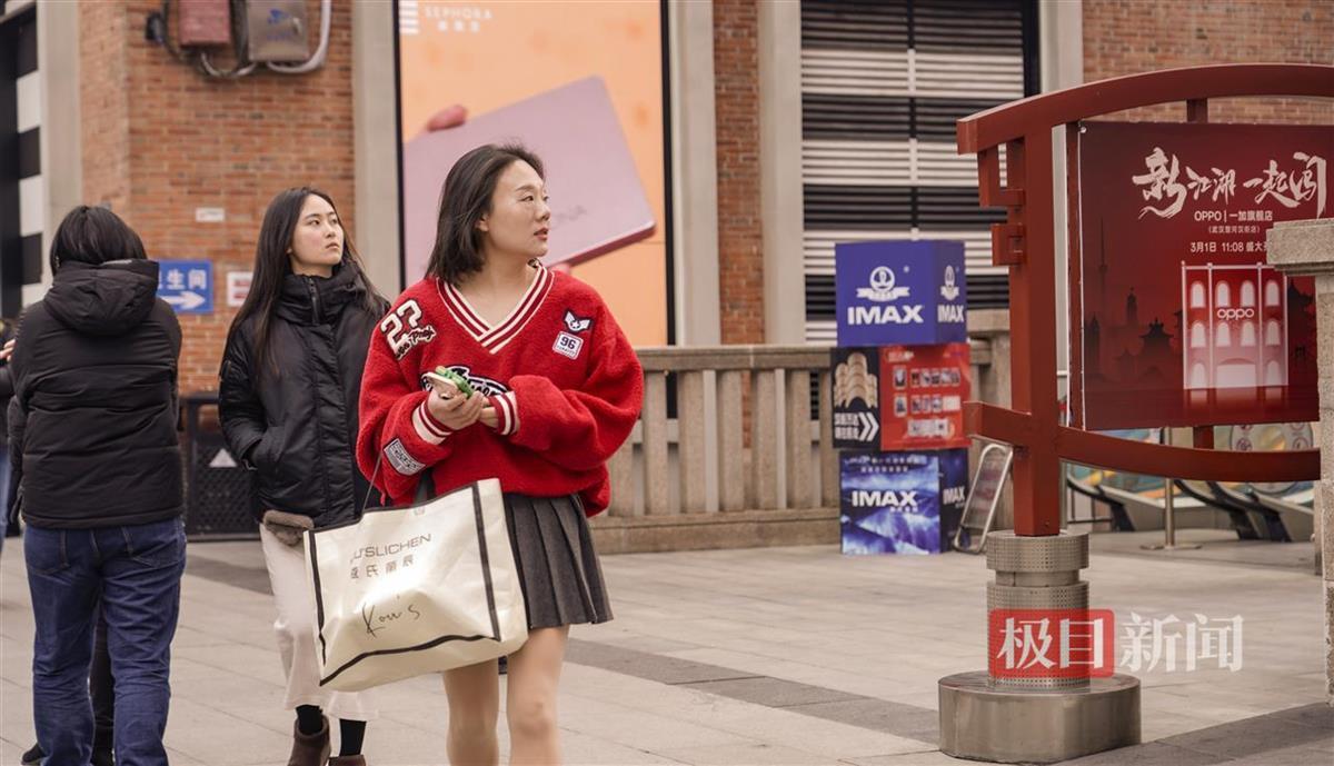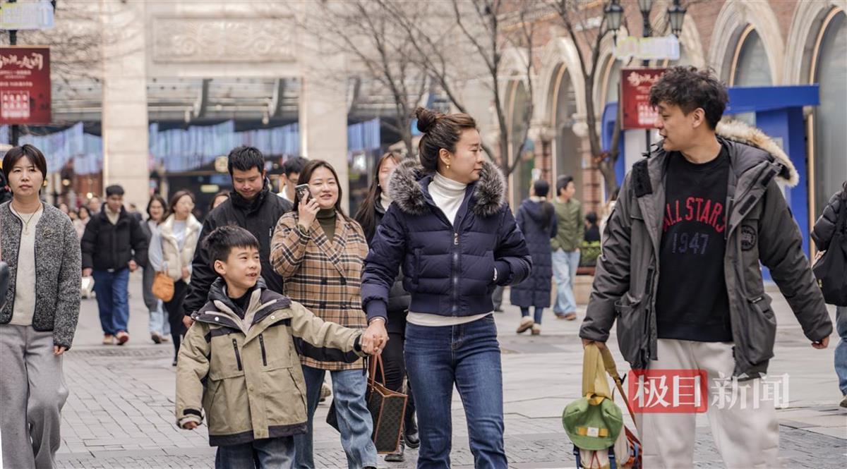 接连几天的阴雨低温天气后,2月23日,武汉天空放晴。当天,武昌楚河汉街迎来大批市民游客,人们在这里逛街、赏景。