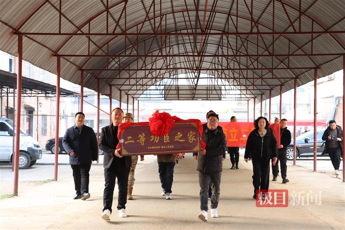 2月19日,湖北省随州市随县尚市镇净明铺村锣鼓喧天,热闹非凡。由随县县领导、县退役军人事务局、县人武部和尚市镇政府领导组成的送喜报队伍,浩浩荡荡地前往荣立二等功的现役军官李迎春家中,为其家属送上这份承载着荣耀的喜报,让军人军属共享这份无上的光荣与喜悦。