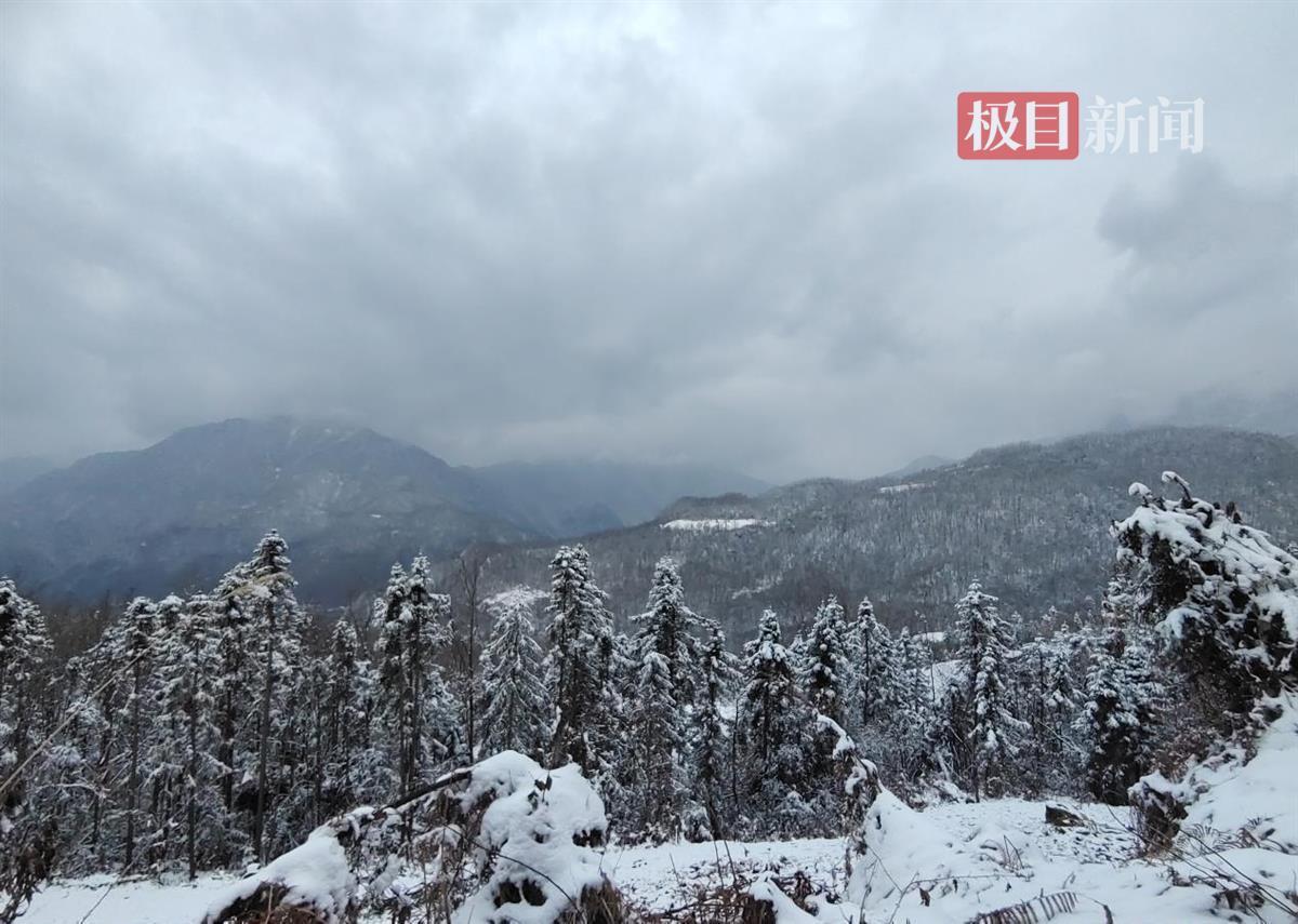 晨光初绽时,保护区内海拔1600米的主峰云雾翻涌,冰凌如水晶帘幕垂挂于树木林间。常绿乔木的墨绿色叶片托举着松软的雪团,与落叶乔木遒劲的银白色枝干构成天然水墨长卷。“雪压枝头低,虽低不着泥”,保护区工作人员说道,这类适度积雪可以抑制植物过早萌发,为芽苞提供低温春化条件。同时,这场雪的降水量又能够有效补充土壤墒情和降低森林火险等级。