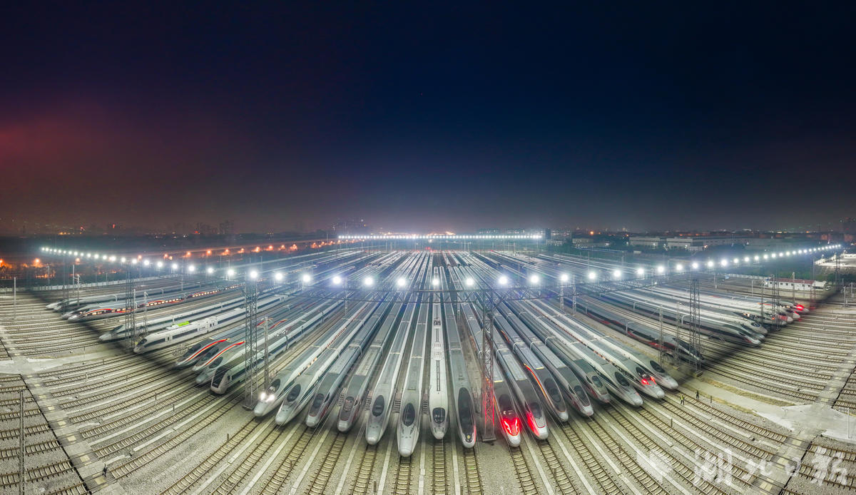 资料图 动车组列车停靠在武汉动车段的存车线上,犹如“陆地舰队”(湖北日报全媒记者 柯皓 通讯员 单振标 杨彪 摄)