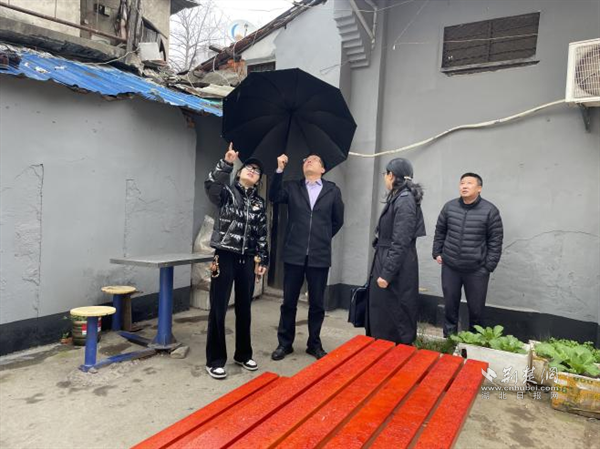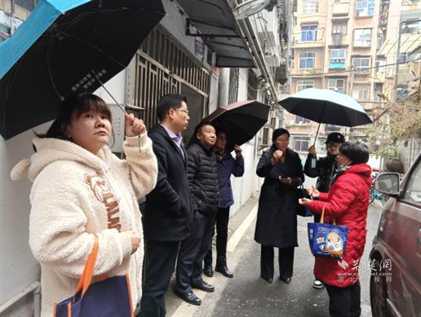 荆楚网(湖北日报网)讯(通讯员 张雅珺)2月20日,武昌区人大代表严阿荣、张梅红、金崇志、吴绪康等一行,在首义路街道相关负责人的陪同下,深入大东门社区调研,探讨辖区老车站路99号外墙开裂脱落及老车站路72号、74号下水井阻塞等问题的解决方案。