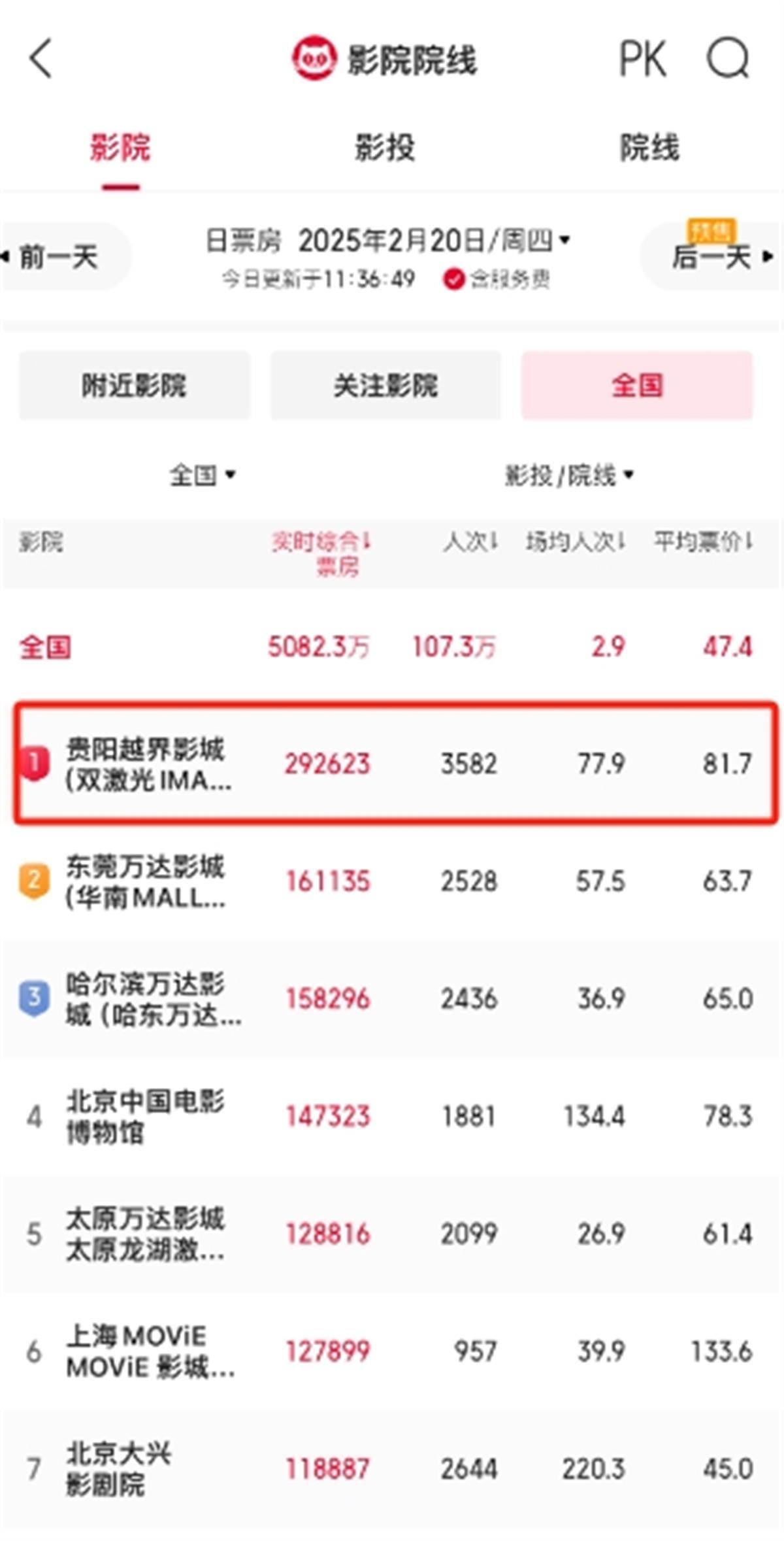 据文昌云岩此前2月21日报道,最近贵阳的越界影城可是火出圈啦,已连续五日登顶全国影院单日票房榜。