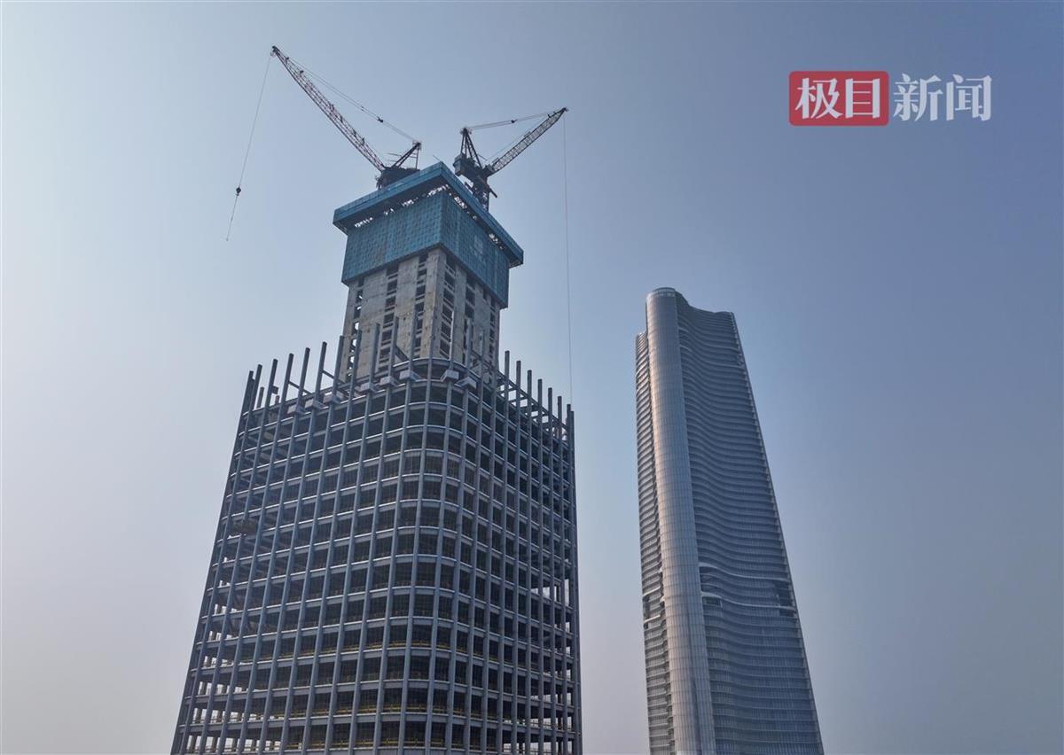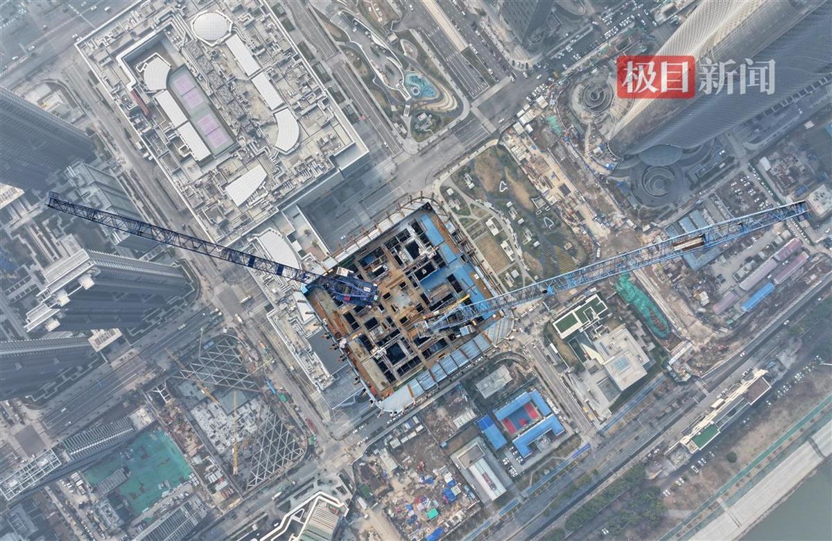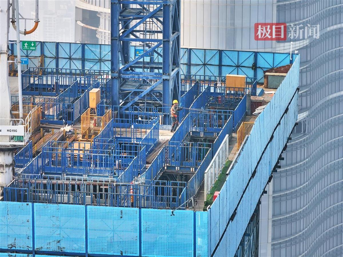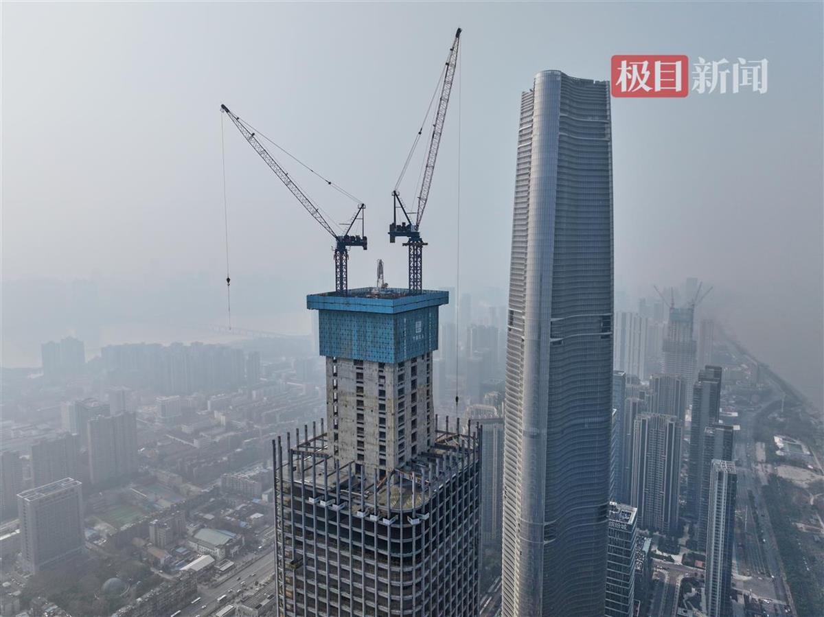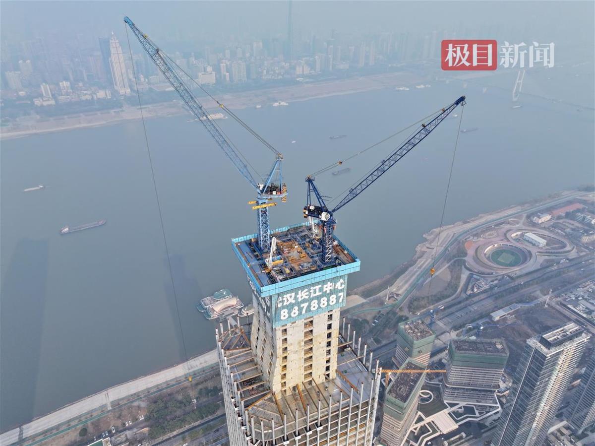 据悉,武汉长江中心高380.45米,建成后将成为武汉第三高楼。在造楼机的助力下,预计今年4月实现塔楼核心筒封顶。