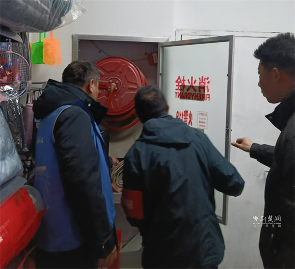 工作人员在超市查看消防设施。 通讯员供图