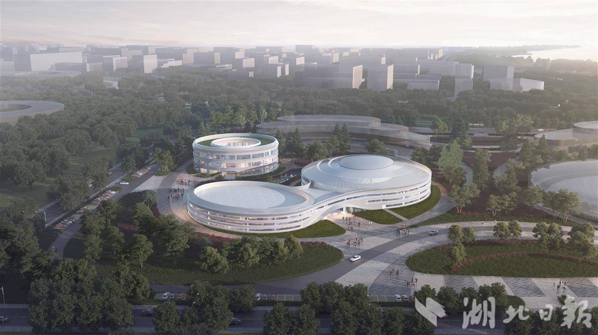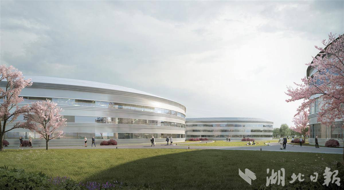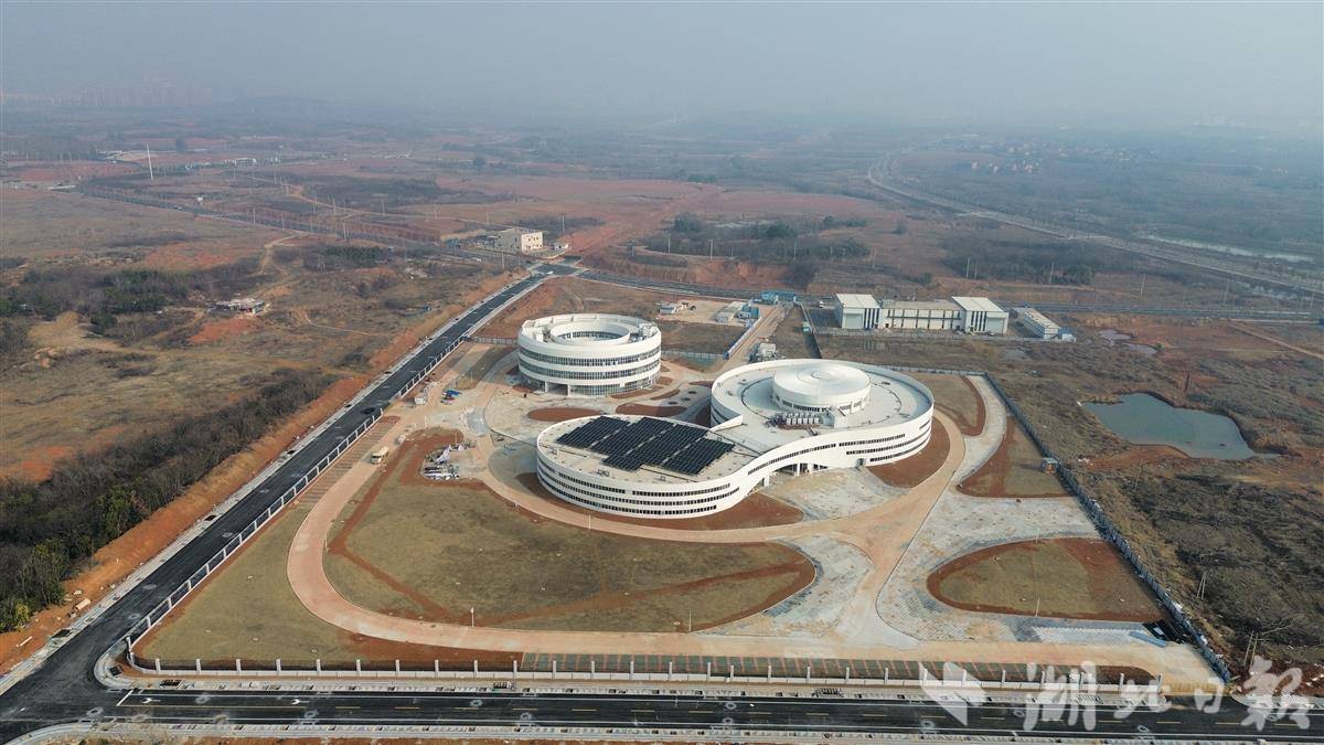 2月24日,湖北日报全媒记者在建设现场看到,这座形似3个鹅卵石的巨大建筑已破土而出、初具雏形,土建项目进入收尾阶段,园区路面铺垫着钢板,大型设备正在陆续进场、紧锣密鼓地进行安装调试。