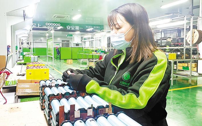 2月19日,在云康时代锂电池生产车间,工人正在封装电芯。 (湖北日报全媒记者 蔡俊 通讯员 邹云梦 摄)