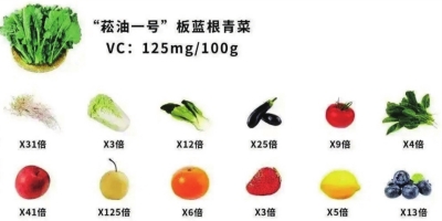此外,据此前农业农村部品质监督检验测试中心(武汉)检测结果报告,100克板蓝根青菜所含的维生素C含量为98.4mg/100g,相当于橙子的2-3倍、苹果的 30倍。此前因维生素C含量高而出圈的折耳根,100g中的维c含量也只有30—60mg。每100g板蓝根青菜,就可基本满足成年人每日维生素C的推荐摄入量(100mg)。
