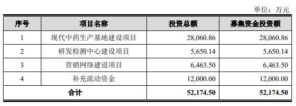 济人药业原拟在上交所主板公开发行股份的数量为不超过6,384.89万股,原拟募资52,174.50万元,用于现代中药生产基地建设项目、研发检测中心建设项目、营销网络建设项目、补充流动资金。
