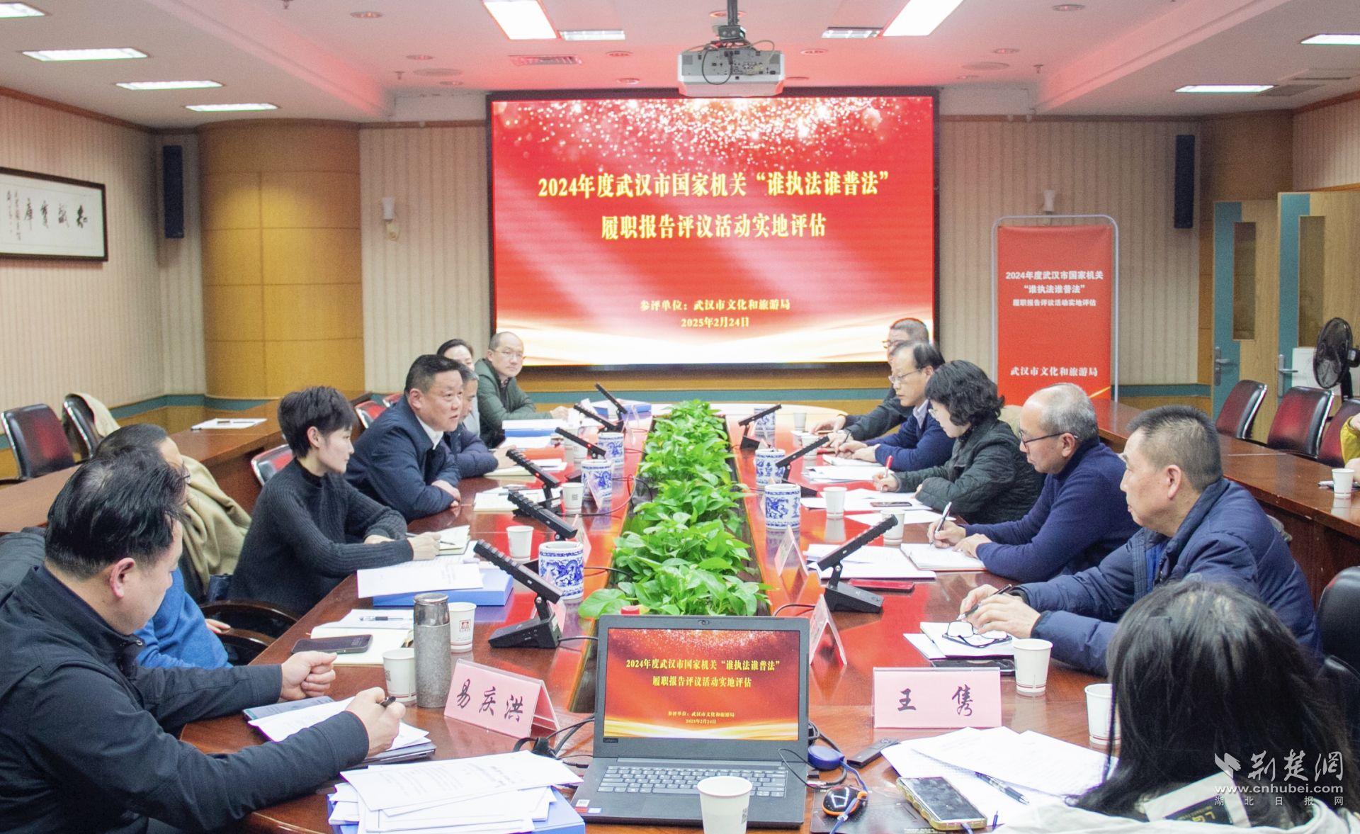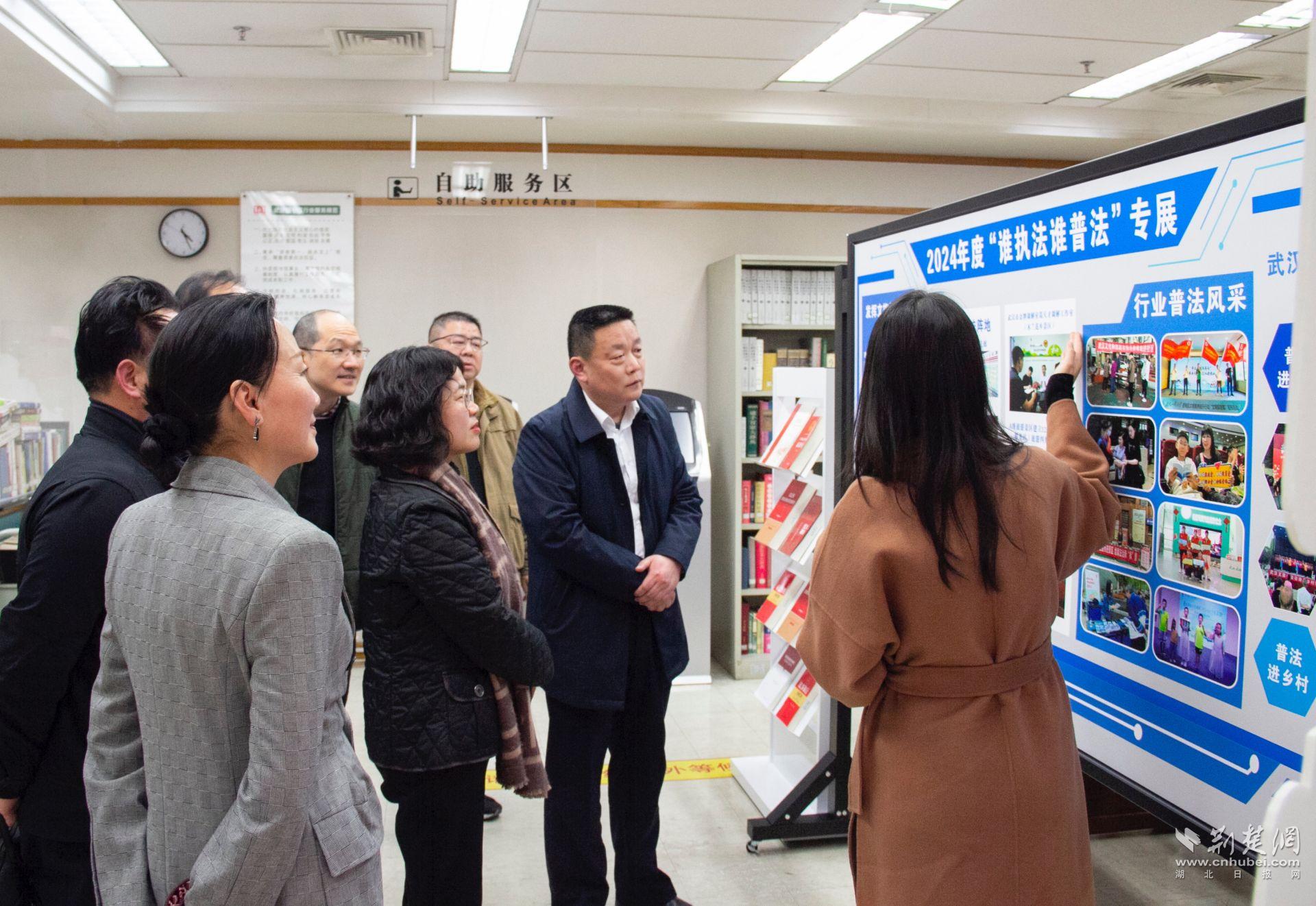 荆楚网(湖北日报网)讯(记者肖慧婷 通讯员朱云丹、戴雯雯)2月24日,武汉市委依法治市办、武汉市司法局组织“谁执法谁普法”履职报告评议团来到武汉市图书馆,通过查阅台账、座谈交流等方式就武汉市文化和旅游局普法履职情况进行实地评估。武汉市司法局党委委员、副局长刘新涛出席活动并进行了点评。