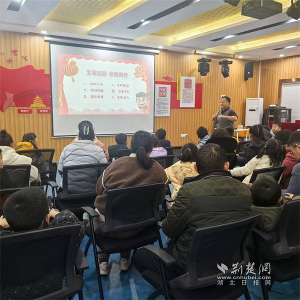 荆楚网(湖北日报网)讯(通讯员 邓艳 侯本瑞)2月23日下午,武昌区杨园街道临江社区二楼“童梦剧场”举办观影活动,50余组家庭共同观看动画电影《哪吒之魔童降世》,欢度温馨周末时光。