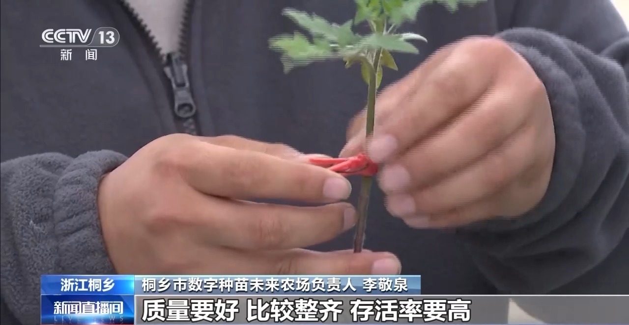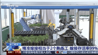桐乡市数字种苗未来农场负责人 李敬泉:它嫁接出来的种苗,质量要好,比较整齐,存活率要高。第二,这种机器不受时间、空间的限制,可以一直连续工作。再一个,这种嫁接机器人能避免嫁接过程中病害病菌的传染,从而来提高整个种苗的质量。