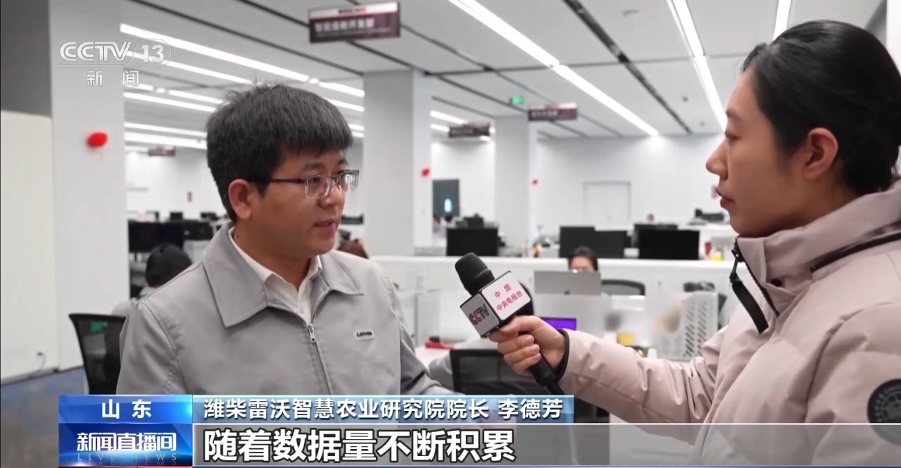 潍柴雷沃智慧农业研究院院长 李德芳:实际上农机变成了一个可移动的智能终端,它上面搭载了各种传感器,作业过程中去采集各种作业的信息,这些数据到了(AI)模型去做一个融合,这样的话帮助农机作业更精准。