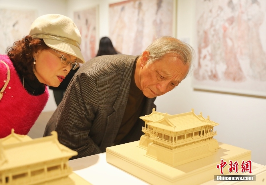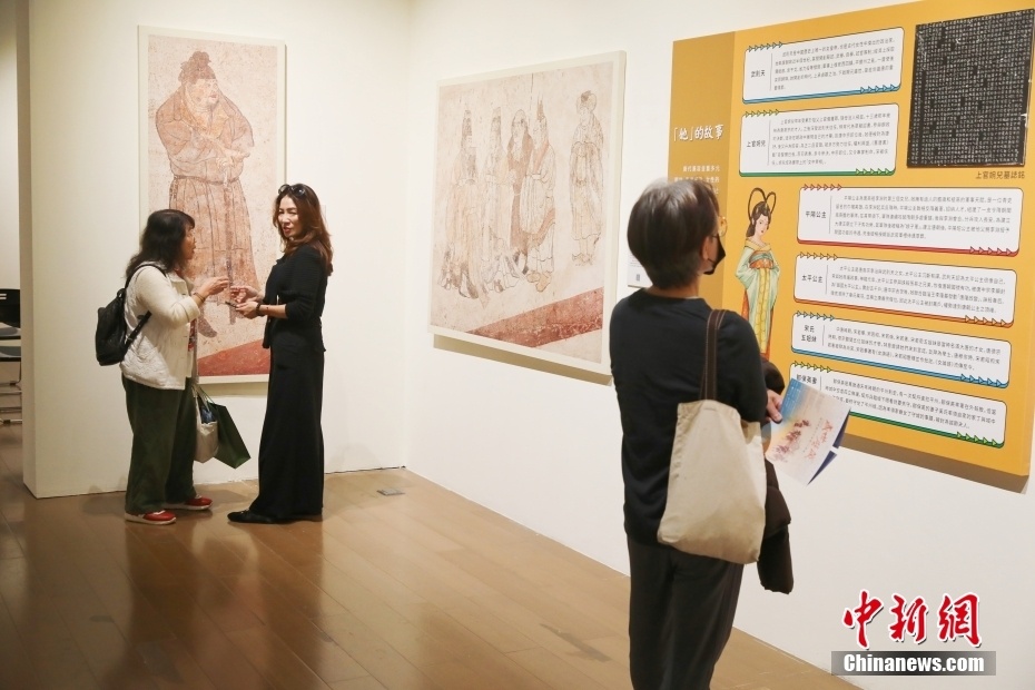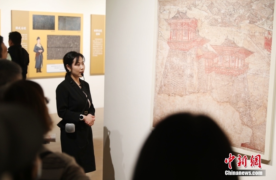 2月25日,2025“盛世壁藏——唐代壁画文化特展·三部曲”在台中东海大学举办开幕式。图为受邀赴台参加展览活动的陕西历史博物馆社会教育部馆员黄姣为参观者讲解唐代壁画。