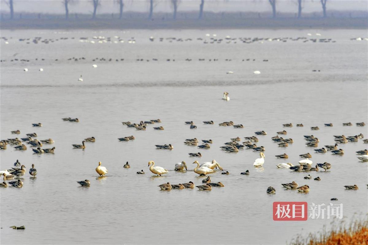 刘新建解释,今年小天鹅是多一些,从感官上比往年要多一倍,它们喜欢在远处的角落待着,所以不易被人察觉,有时也会来大湖中睡觉,与大堤的距离近一些。
