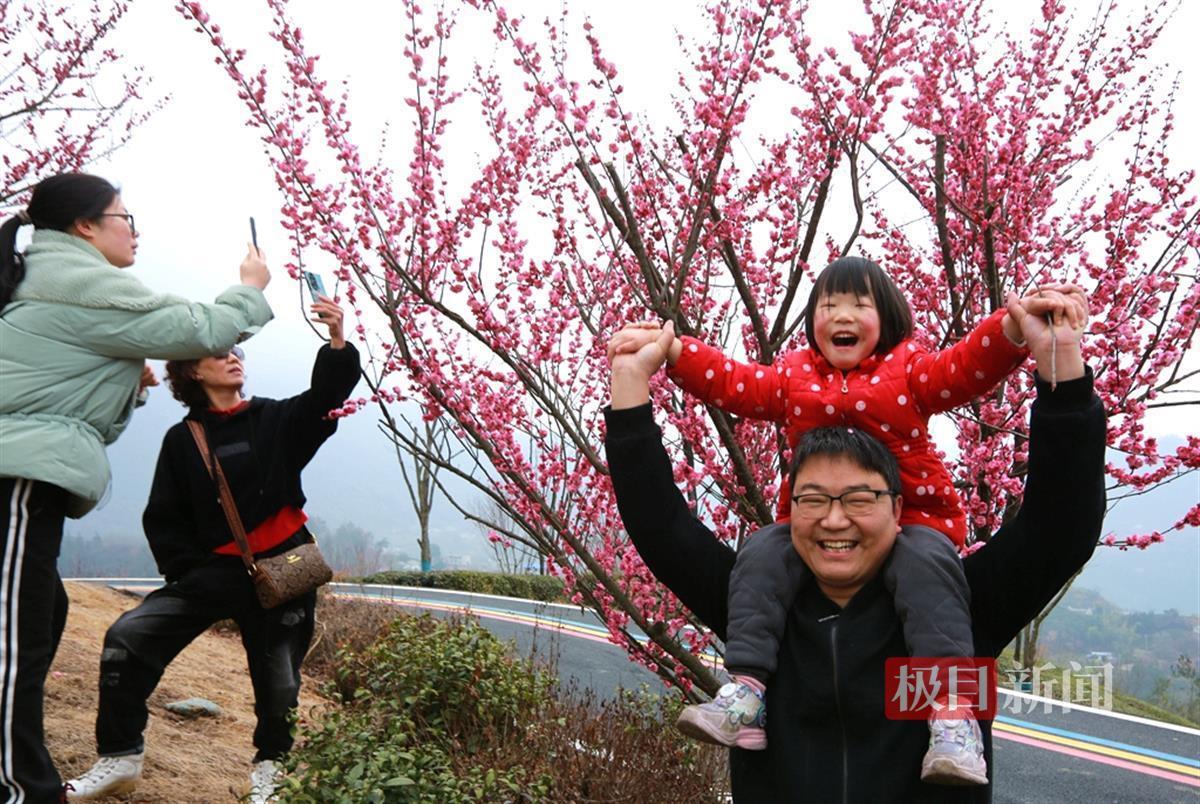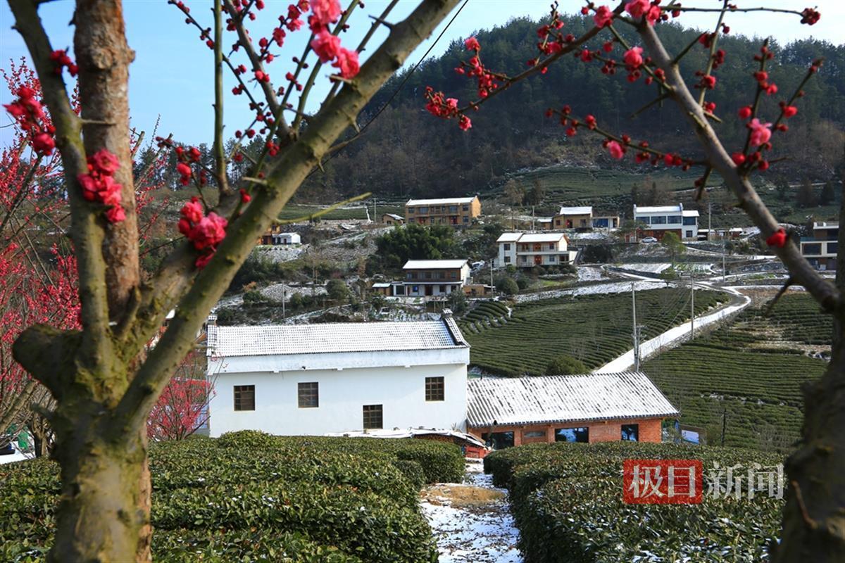 2月23日,在竹山县城关镇刘家山村千亩茶园步道上,数万株红梅含苞怒放,吸引得诸多游客纷纷前来打卡观赏。