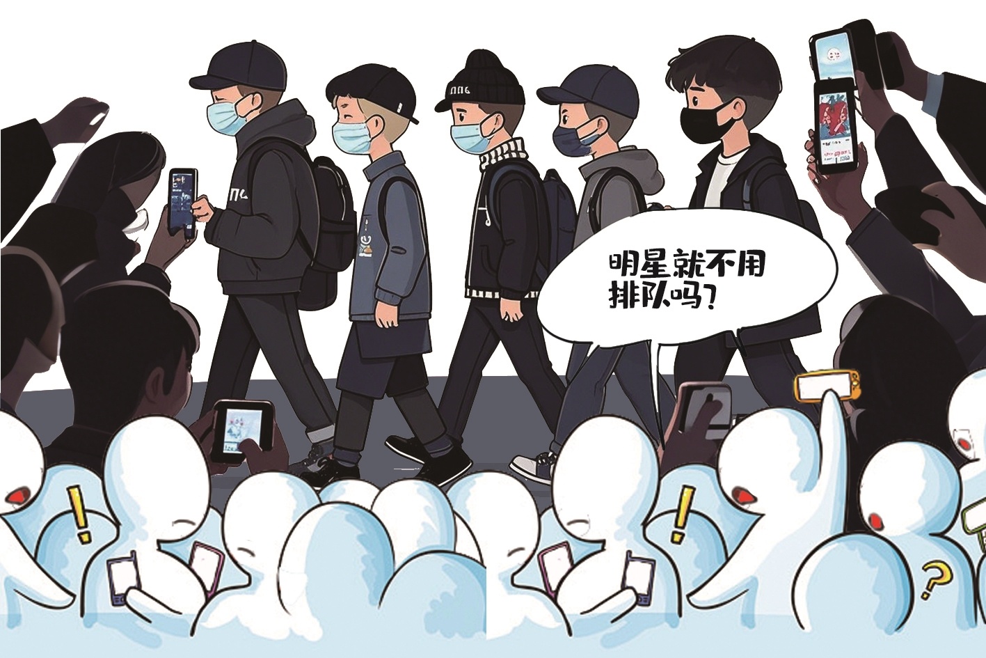 2月23日凌晨,有网友发文称,22日晚,他在深圳宝安机场排队候机时,突然来了一个男团和工作人员,被安排优先登机,粉丝也一拥而上开始插队,场面十分混乱。该网友质问:“明星就不用排队吗?机场工作人员没有给一直排队的乘客们任何合理解释,我们花了钱的普通人需要一份尊重!”(据2月25日极目新闻)
