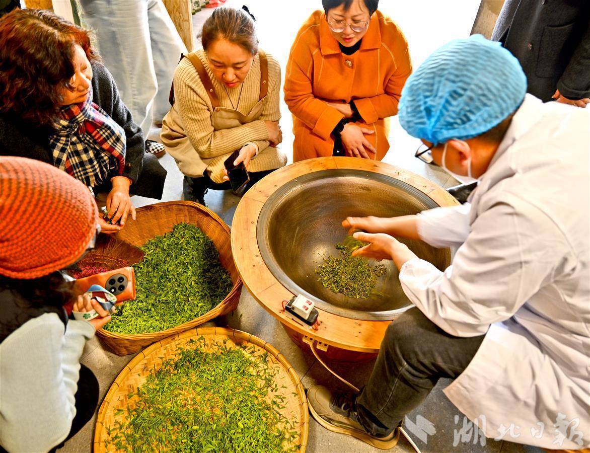 2月25日下午,宜昌城区二马路满意楼内热闹非凡,“炒茶吧!青年!”宜昌早春茶品鉴沙龙活动在此火热开展。活动现场,宜昌制茶艺人与市民亲密互动,展示传统非遗制茶技艺,吸引了众多青年,参与者尽情品尝早春茶的鲜爽韵味,感受新茶的独特魅力。宜昌早春茶较其他茶产区提前约15天上市,这得益于三峡库区优越的地理气候环境。特殊的山水条件形成了独特的小气候,使得茶树能够更早地萌发新芽,孕育出品质上乘的早春茶。活动不仅让青年群体近距离接触到传统制茶工艺,还以新颖的形式将传统文化与潮流元素相融合,为弘扬宜昌茶文化、推广宜昌早春茶品牌起到了积极作用。(湖北日报全媒记者 刘曙松 摄)