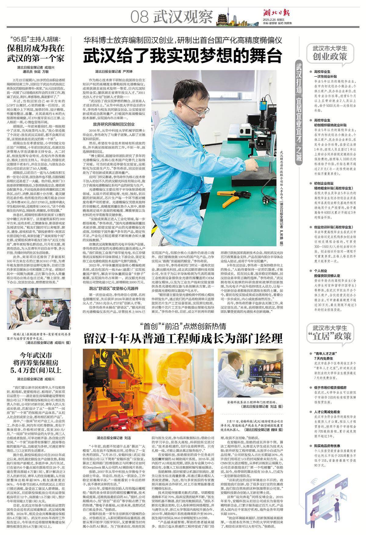 9年在汉创业,李伟奇一直保持稳步向上的势头。“人始终要保持一定的饥饿感,才能持续成长。现在回头看,放弃稳定的编制,回汉创业是非常正确的选择。”李伟奇说,“武汉拥有得天独厚的科研资源和浓厚的创新氛围,为光电子产业升级持续注入活力,让每一个创新创业者都能找到落地生根的土壤。如今,看到在校实验成果成功落地转化,看着公司一步步成长,内心成就感油然而生。”