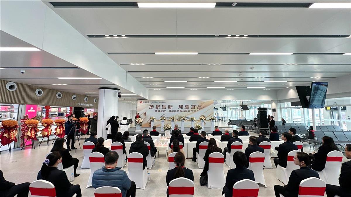 2月26日,湖北宜昌三峡国际机场出境免税店开业仪式在机场T1国际航站楼顺利举行,宜昌市政府副市长汤明、珠海免税集团董事长陈辉、珠海免税集团副总经理蒋济舟、宜昌市商务局党组书记李智勇、猇亭区委书记左晓、三峡机场董事长徐佐强等领导共同为免税店开业仪式剪彩。