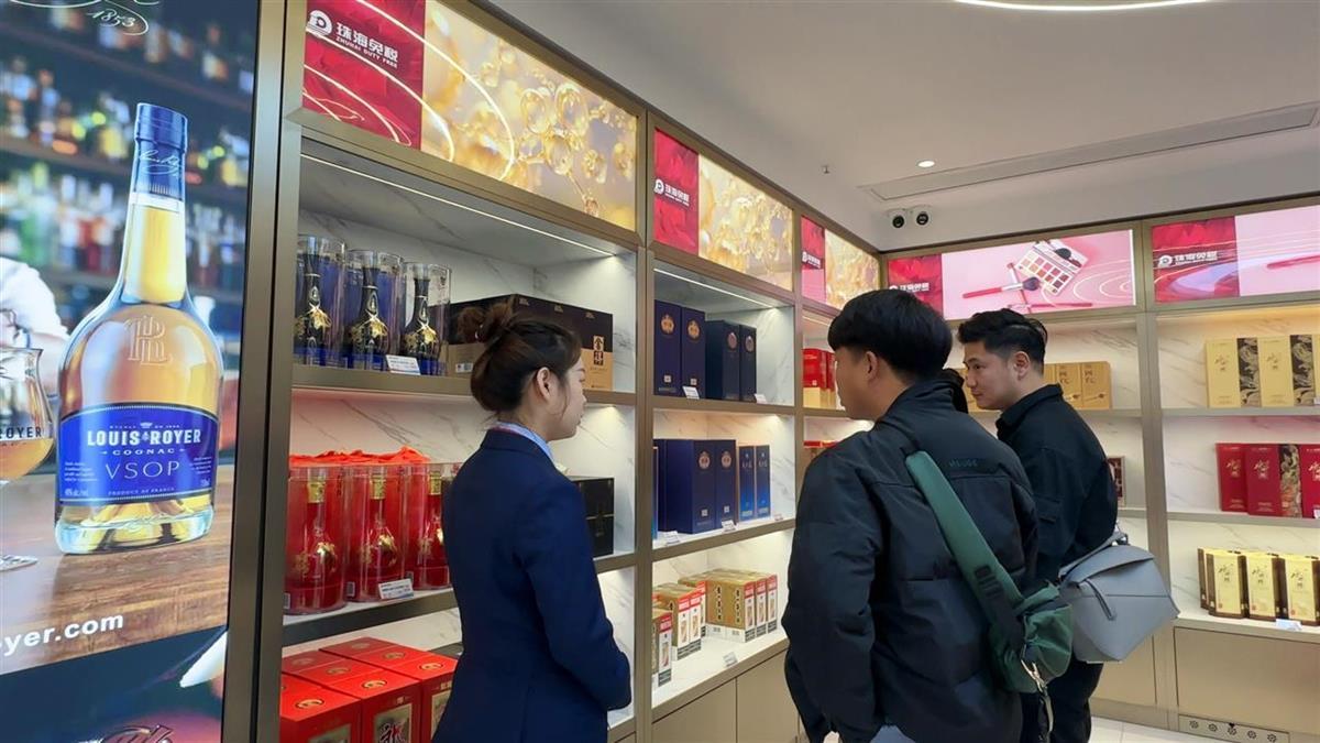 珠海免税店工作人员为旅客介绍产品