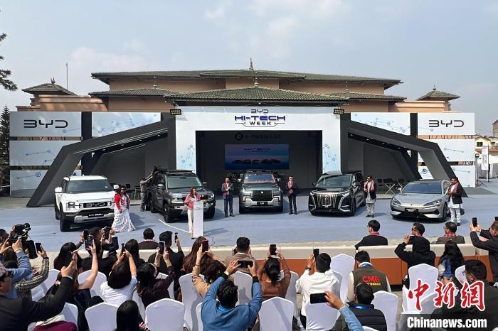 2月26日,中国新能源汽车品牌比亚迪旗下全品牌新能源车型在尼泊尔首都加德满都集中亮相。中新社记者 崔楠 摄