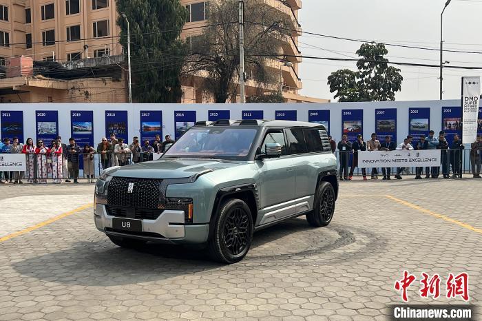 2月26日,比亚迪“仰望U8”展车在尼泊尔加德满都展示360度原地掉头。中新社记者 崔楠 摄