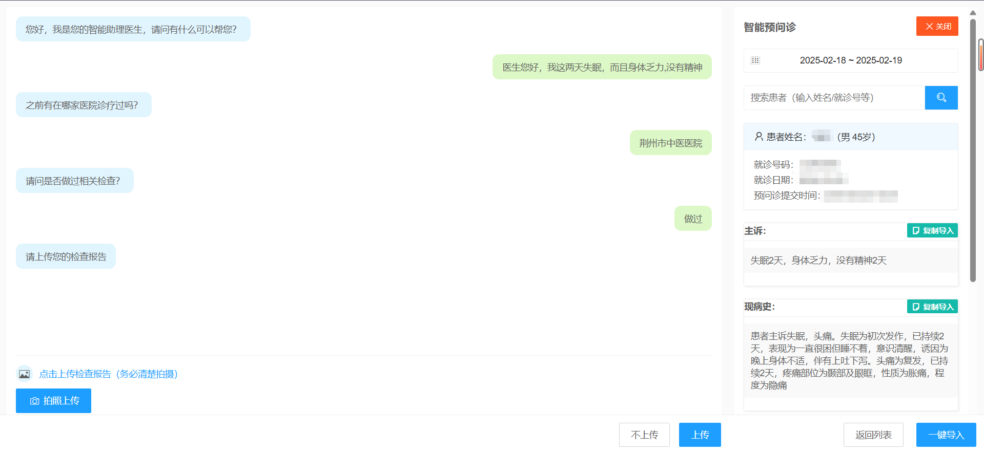 智能问诊新体验。借助AI预问诊系统,患者在线上即可完成症状初步描述,系统基于自然语言处理技术推荐最匹配的科室与医生,并自动生成就诊优先级。