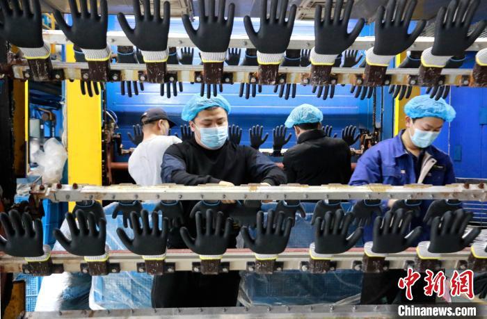 山东星宇手套有限公司工人们在生产线上生产手套。(资料图)李海涛 摄