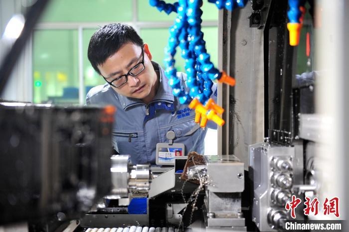 金永和精工制造有限公司加工二分厂生产车间工人正在调试设备。(资料图)高密市委宣传部供图