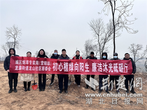 荆楚网(湖北日报网)讯(通讯员 王博)2月22日,荆门市城区烟草专卖局(营销部)在龙山社区的组织下,前往荆门市十里牌林场五岭分场轿古山参加“初心植绿向阳生,廉洁沐光砥砺行”义务植树活动,以实际行动美化生态环境,共建美好家园。