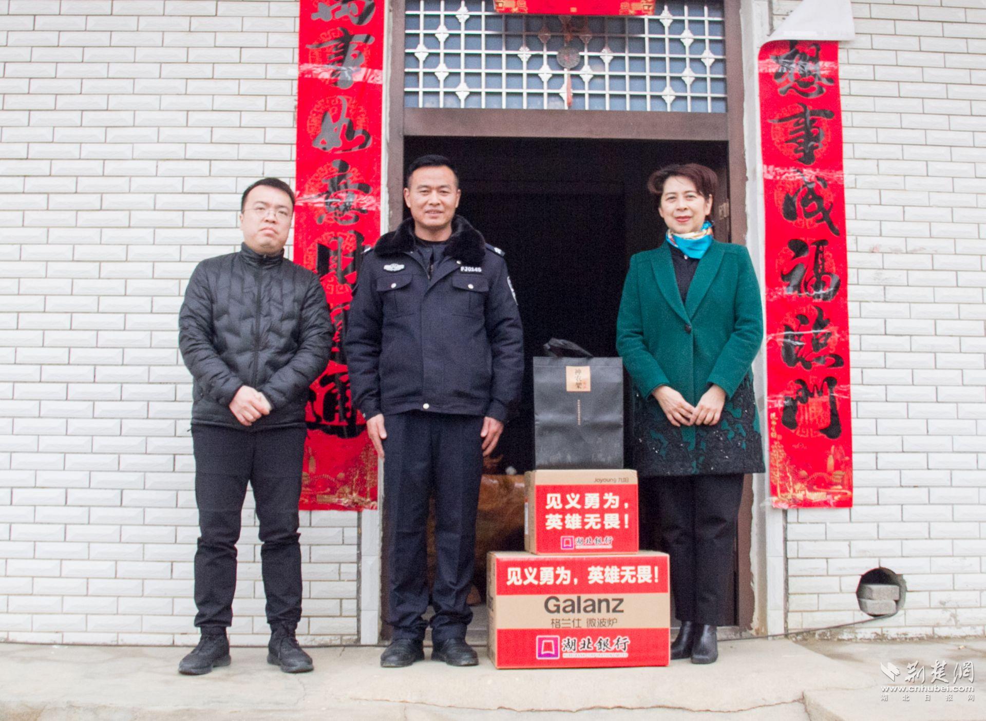 湖北银行向杜志军赠送慰问品。肖慧婷 摄