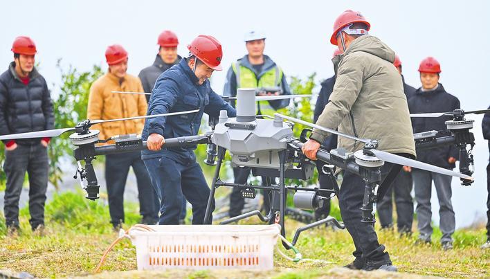 2月17日清晨,秭归县茅坪橘园里,42岁的刘辉德手持对讲机穿梭在学员中间。寒风中,他的目光始终追随着空中10架训练无人机。