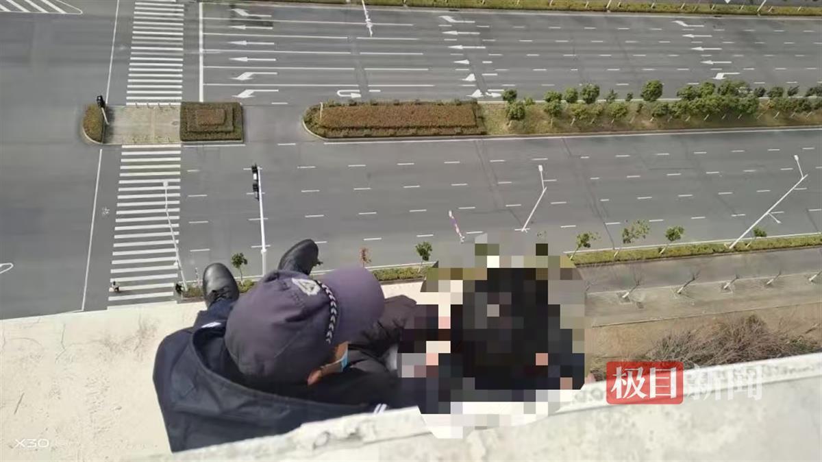 事发现场卜群斌用双臂紧紧护着轻生男子