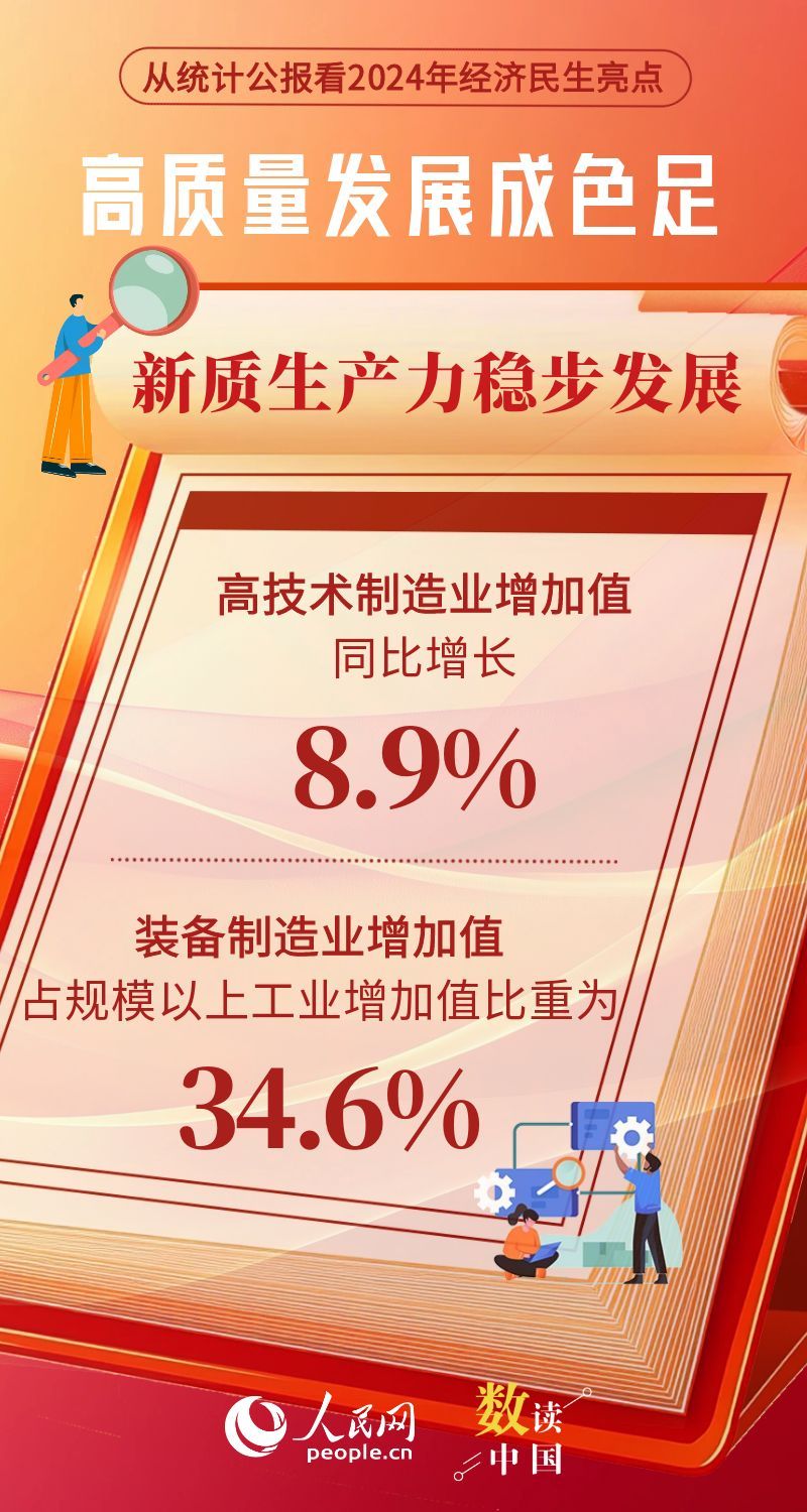 2月28日,国家统计局发布《中华人民共和国2024年国民经济和社会发展统计公报》。公报显示,2024年我国经济运行总体平稳、稳中有进,高质量发展扎实推进,新质生产力稳步发展,民生保障扎实有力,中国式现代化迈出新的坚实步伐。9组数据速览经济民生亮点。