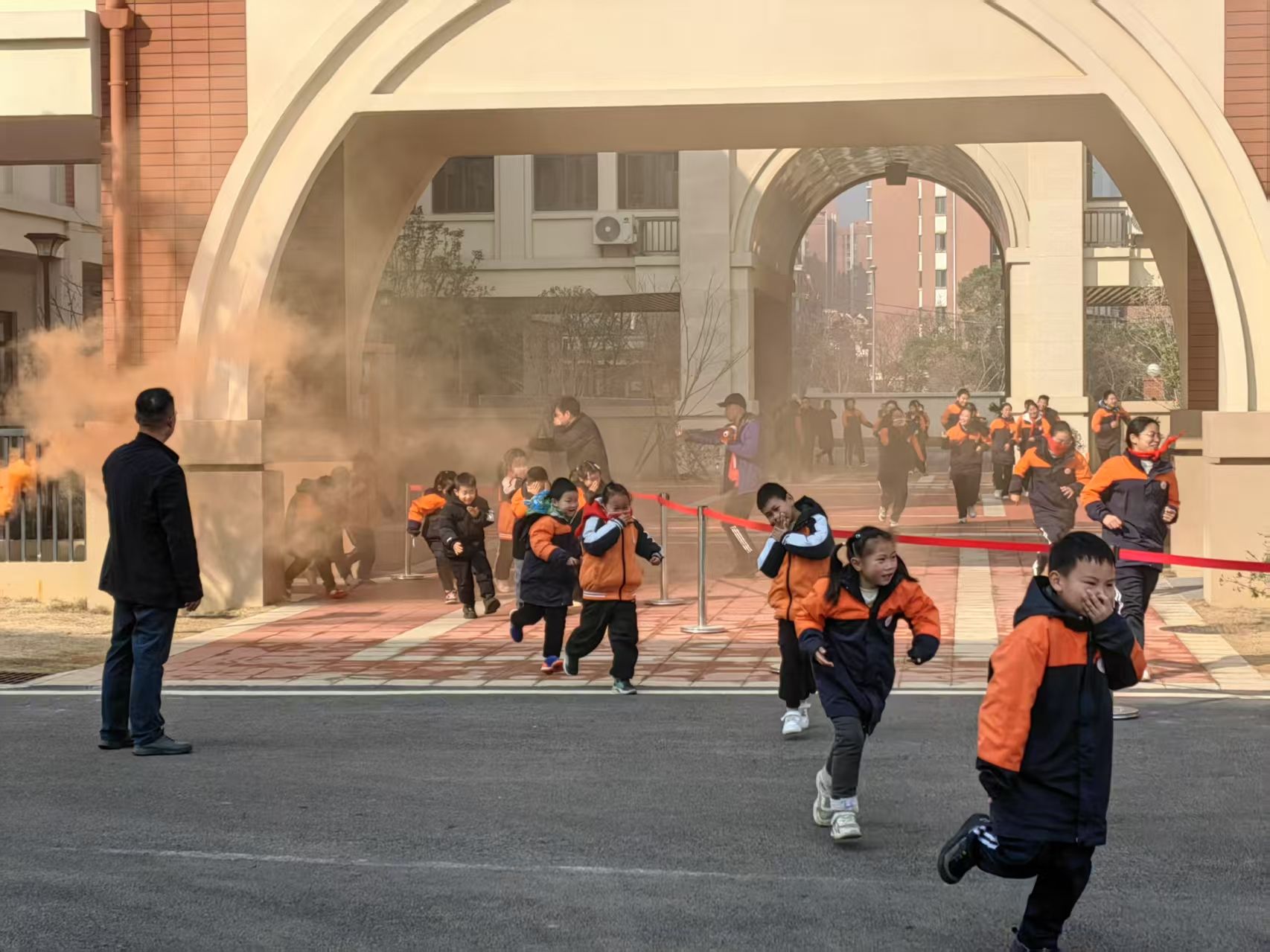 操场上突然烟雾四起,500余名师生化身为训练有素的逃生达人,齐刷刷地弯腰捂鼻,在能见度不足2米的通道里“火线突围”,高效有序撤离。