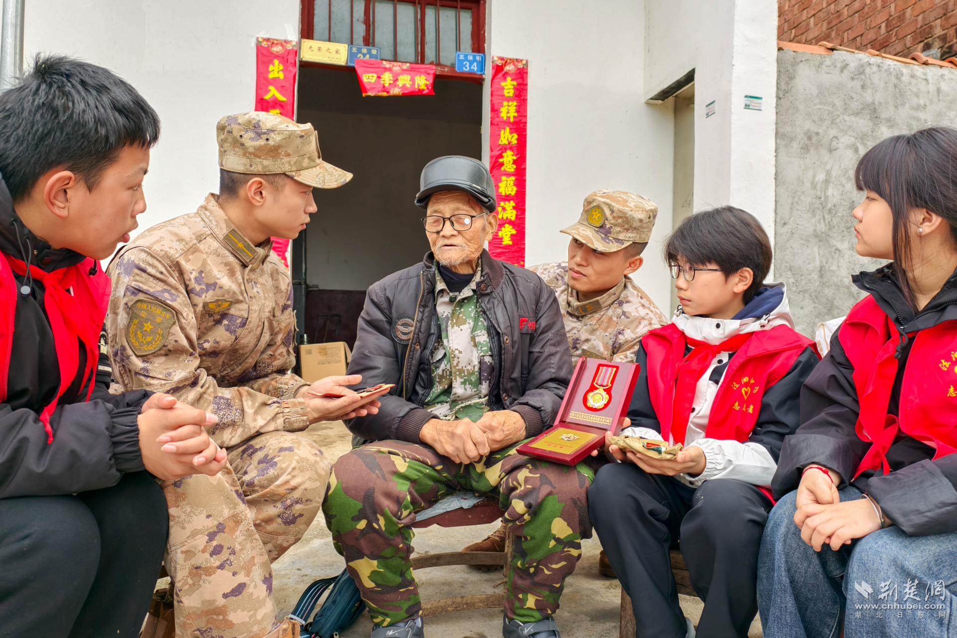 荆楚网(湖北日报网)讯(通讯员舒威 杨大斌)在第62个学雷锋纪念日到来之际,为弘扬雷锋精神,传承红色基因,增强志愿奉献服务意识和精神,2月28日上午,武汉市江夏区退役军人事务局联合法泗街道退役军人服务站、法泗中学和驻区部队开展“弘扬雷锋精神 致敬英雄老兵”志愿服务活动。志愿服务队走进老兵家中,用实际行动践行雷锋精神,向曾经为国家和人民浴血奋战的英雄们致以最崇高的敬意,用实际行动弘扬雷锋精神。