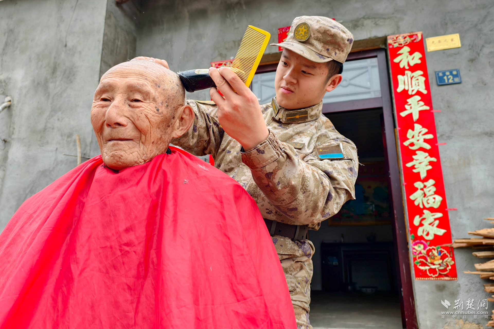“小伙子,你的手艺真不错,我感觉一下子年轻了十岁!”在法泗街桂山村90岁参战老兵葛耀庭家中,部队张班长熟练地为老兵葛耀庭围上围布,拿起剪刀和梳子,精心地为老兵葛耀庭修剪头发。在理发的过程中,志愿服务队和老兵葛耀庭聊起了家常。老兵葛耀庭回忆起自己的军旅生涯,感慨万千:“现在的生活越来越好啦,你们年轻人一定要珍惜啊。在部队的要好好训练,在学校的要好好学习,将来为国家多做贡献。” 志愿服务队队员纷纷认真地点点头。