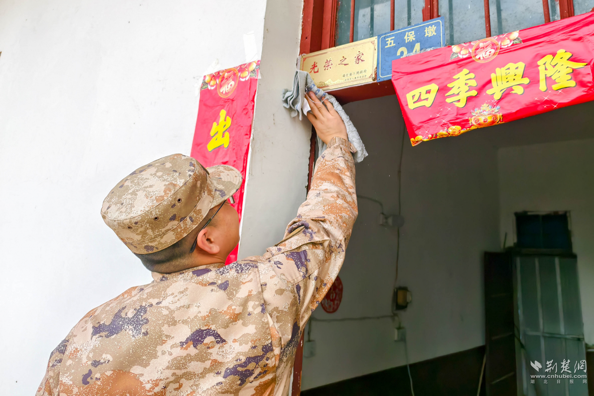 “宋爷爷,我们来看您啦,今天我们来帮您打扫打扫屋子。”上午9时,志愿服务队带着清洁工具和满满的热情首先来到法泗街西港村93岁参战老兵宋世煜家里。宋爷爷脸上洋溢着笑容,拉着部队王班长的手说:“好啊!看到你们这些年轻的面孔,我就想起了当年我在部队的时候,朝气蓬勃,一心就想着保家卫国。”