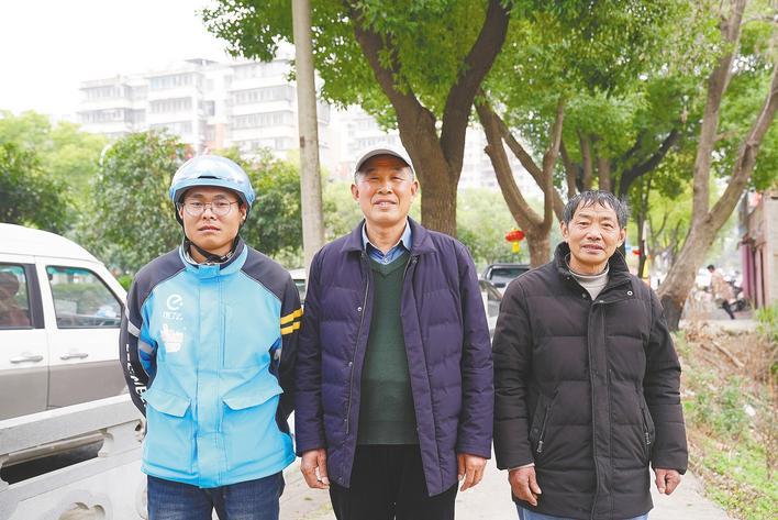 外卖小哥王伟、退伍军人严红武(中)、小区保安倪绍雄(右)。(湖北日报全媒记者 周鹏 摄)