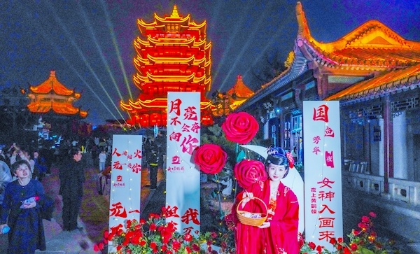 “灯光亮起的瞬间,黄鹤楼仿佛活了过来,李白的诗就像在眼前流淌,不愧是‘春晚同款’。”湖南游客郭先生看完复演首场表演后评价道。
