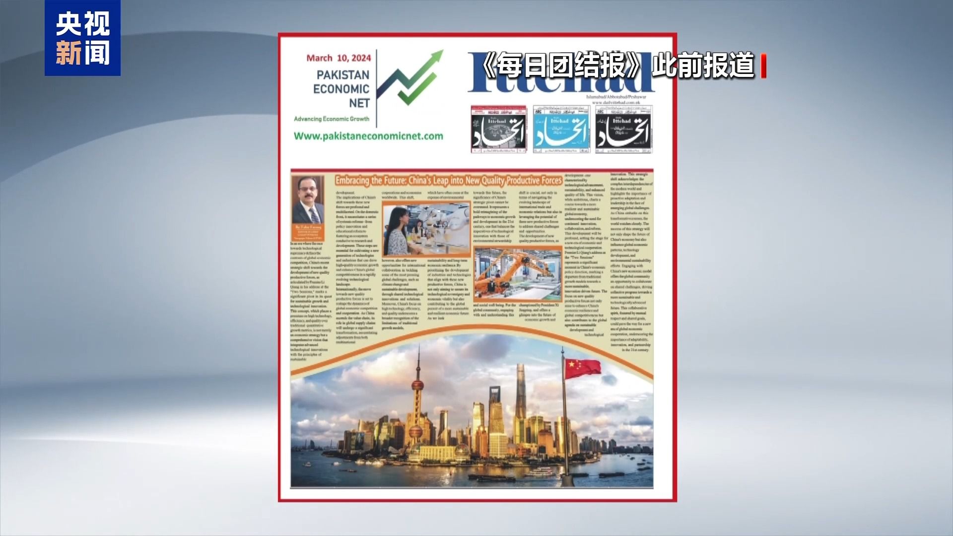 《每日团结报》副主编 玛瑞杰·法鲁克:中国近年来取得了非凡成就,尤其是在高质量发展和可持续增长方面。习近平主席在去年中国两会上也曾强调这些内容,因此我认为这些成就应当被更加广泛地宣传,巴基斯坦人民也应当了解这些重要信息。