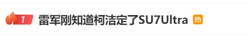 #雷军刚知道柯洁定了SU7Ultra#话题也在2日晚登上微博热搜第一名。