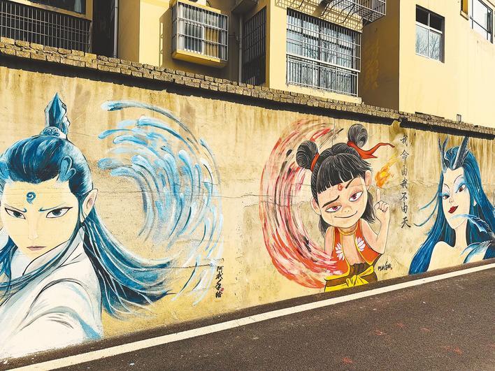 “妈妈快看,墙上有个哪吒!”2月26日,走进随州市曾都区擂鼓墩社区的一条临街小巷,狂野帅气的哪吒、英俊潇洒的敖丙……原本老旧的墙面“住”进了13位《哪吒之魔童闹海》中的人物。