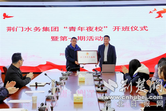 荆楚网(湖北日报网)讯(通讯员 刁丽娜、郑馨蕊)为充分满足青年职工“向内提升、向外社交”的精神文化需求,进一步促进集团与青年的“双向奔赴”,2月26日,由荆门市团市委、荆门市城市水务集团有限公司联合举办的“青年夜校”正式揭牌开班。团市委领导、集团领导及青年员工共计40余人参加开班仪式。