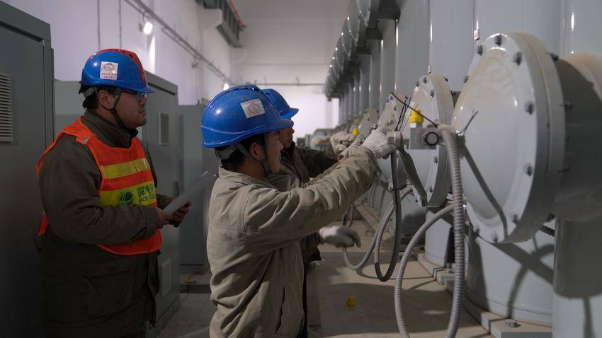 随着工程进入冲刺阶段,变电站主变及其附属系统安装总体完成80%,电力工人正加紧开展设备检测,下一步将进行设备联调联试,以“零缺陷”标准筑牢安全防线。