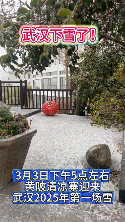 湖北日报讯 (记者黄磊、通讯员黄宣、方崇阳)3月3日下午5点左右,黄陂清凉寨迎来武汉2025年第一场雪,迎风飘起的雪籽落在衣服上格外显眼。