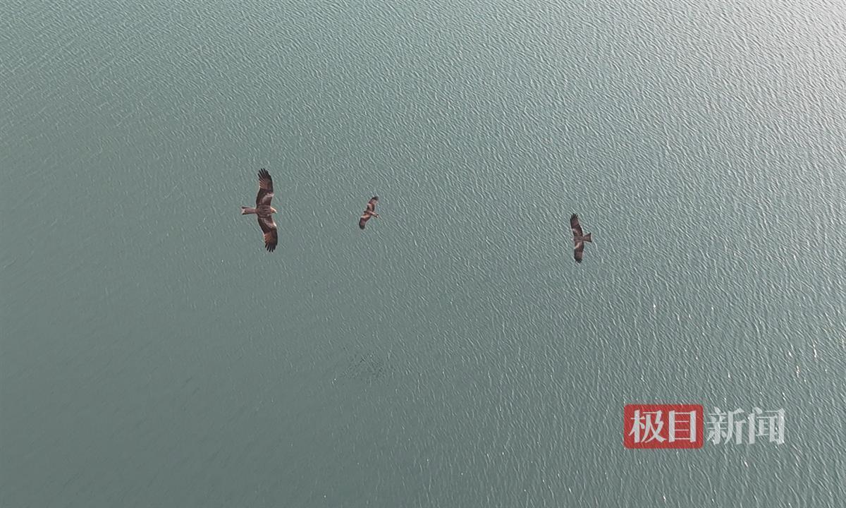 近日,湖北十堰丹江口市林业局野保工作人员在丹江口库区的一条河道上,惊喜发现了11只国家二级保护动物黑鸢。