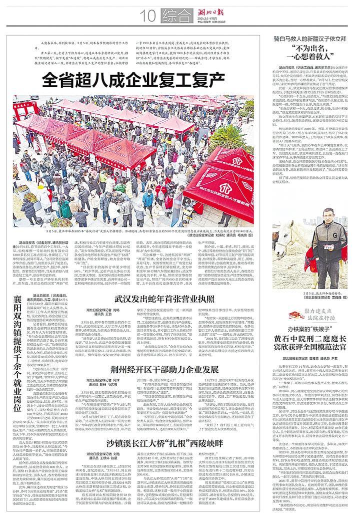2月5日,消息《寒风中,一男子不慎落入汉江 他策马奔向江心 他只身游向落水者》在湖北日报6版刊发,为该事件全国首发的纸媒报道。