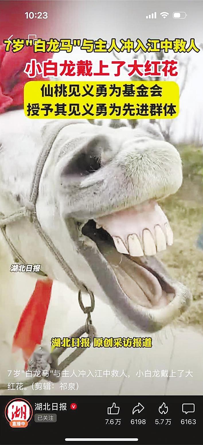 “白龙”马的新闻线索源于仙桃一位户外博主的自媒体账号。