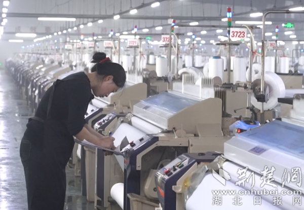 在距离云泰光学不远,同处于黄梅县大胜关山工业园的宏富(湖北)纺织有限公司生产车间内,自动化设备正高速运转,流水线蒸腾着蓬勃活力。